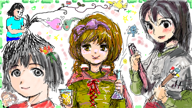 中央の私の描いた女の子は、今考えてる新作ネタの主人公子ちゃんだ。